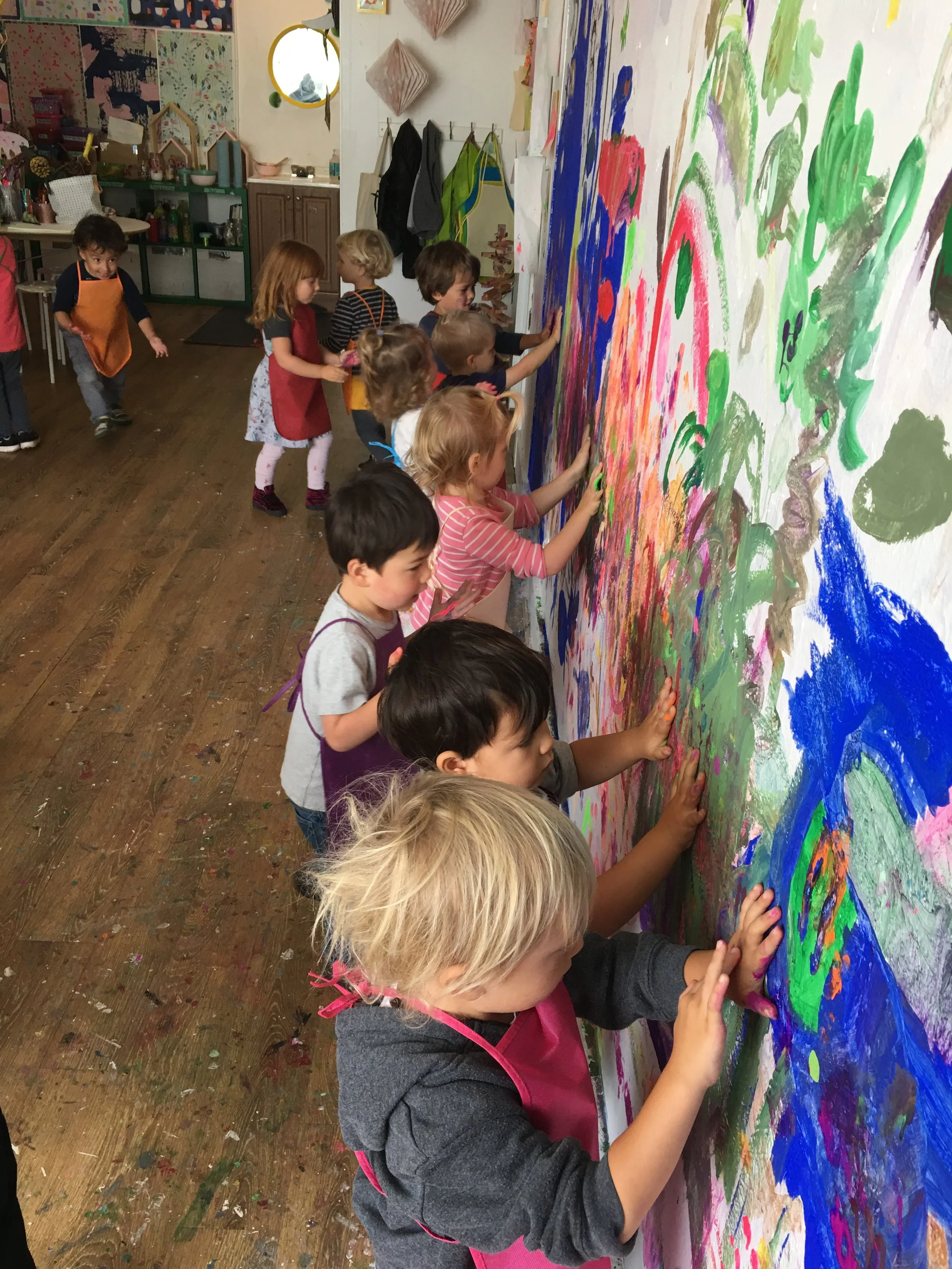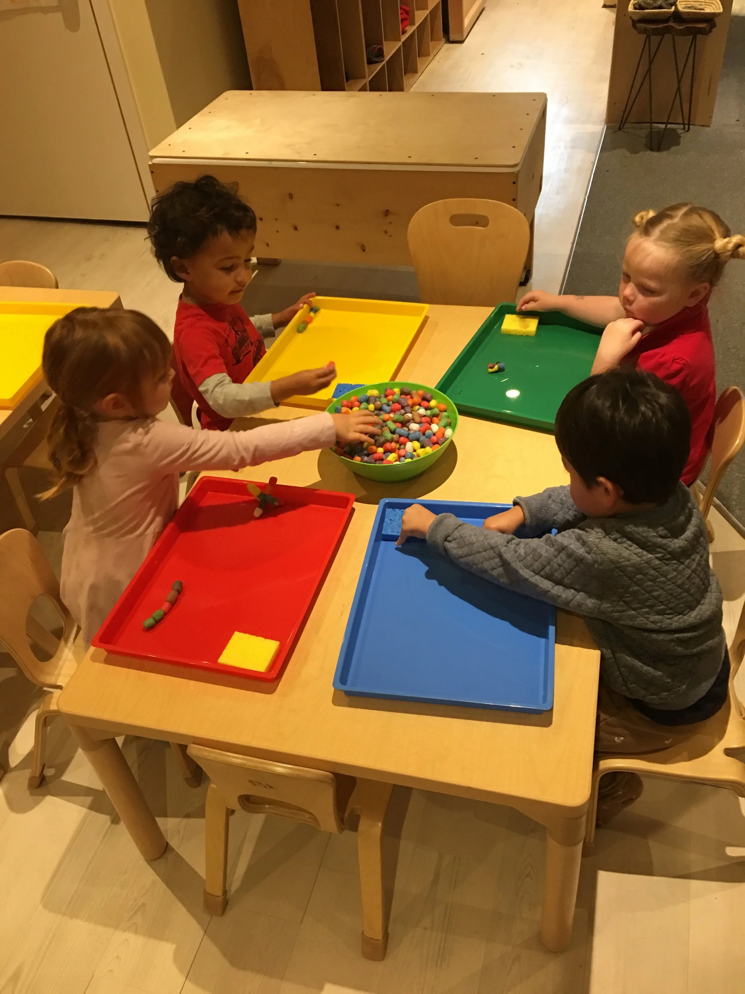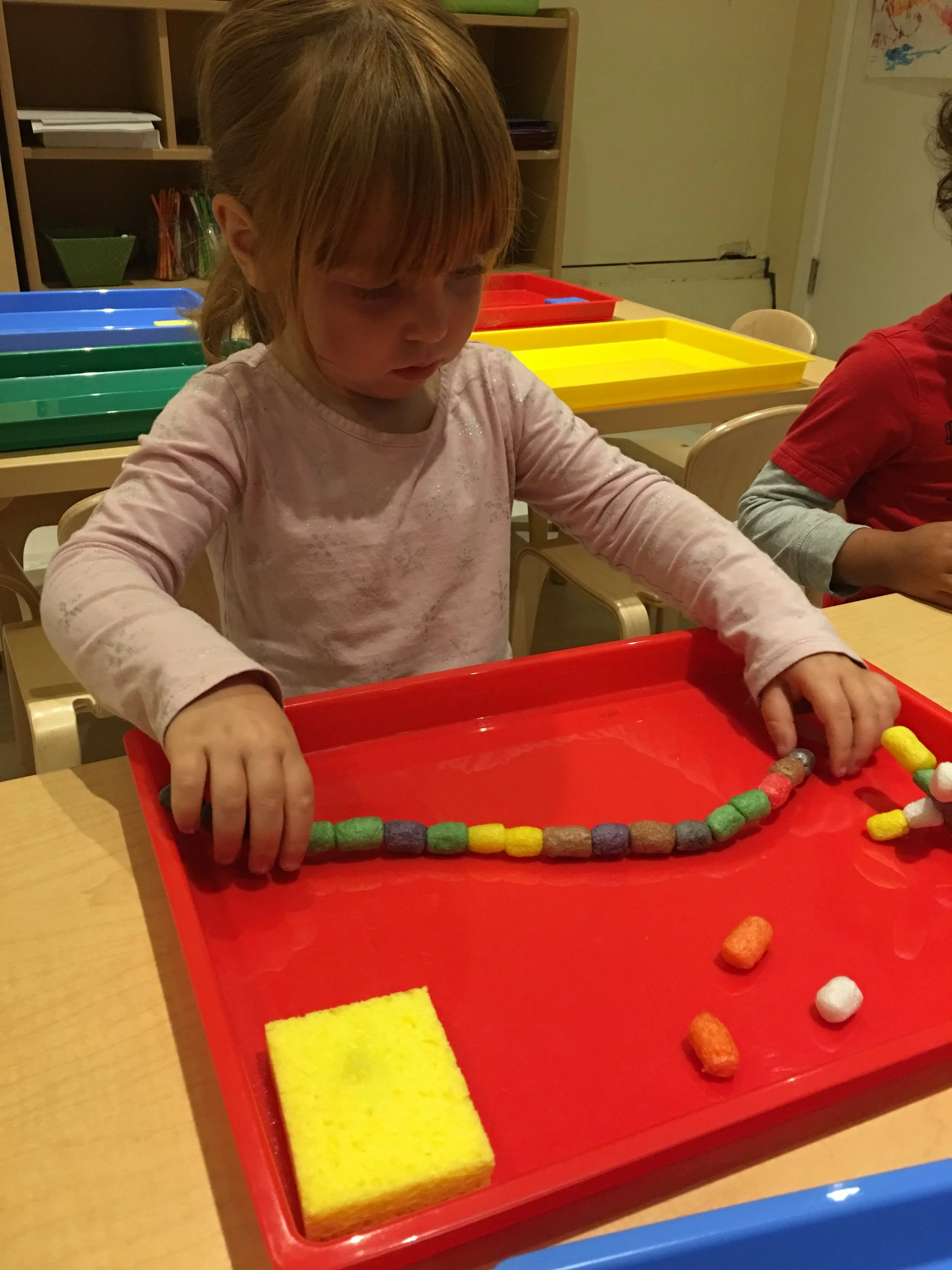 At Mano’s, we have had lots of fun creating caterpillars of all different lengths, colors, and features by using pompoms, paint, and feathers. With Halloween coming up, we also decorated mini pumpkins, turning some into happy pumpkins and some into scary ones. Back at City Sprouts, we have been exploring with different colors and mediums to make doodles. We also had a blast using our fingers to piece together the “Magic Noodles” to make worms, caterpillars, shapes, letters, and swords. We enjoy trading our Magic Noodle creations with our friends.