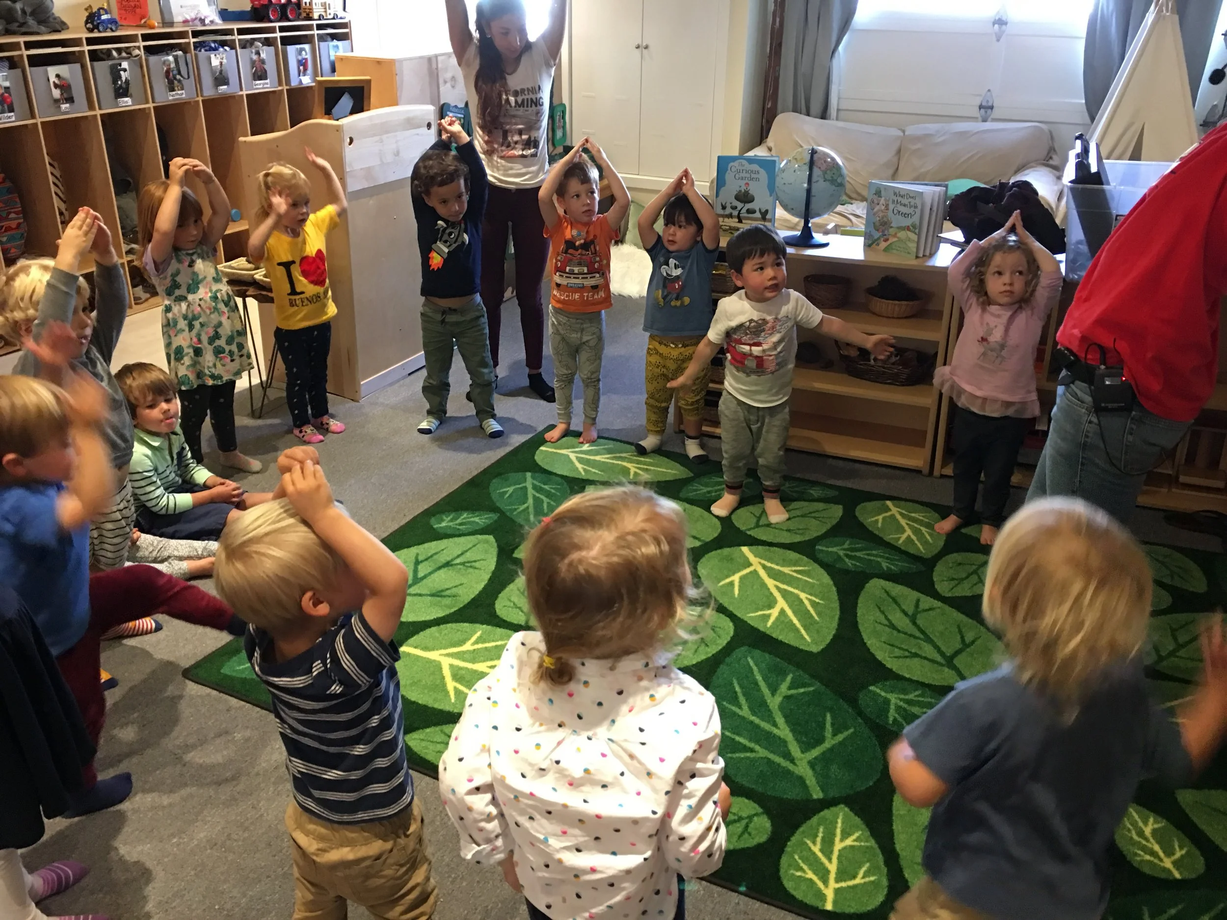 In our recent music classes, we have really enjoyed scarf dancing and singing along with Teacher Charity. Some of our favorites are the mud song, jam jam jam, and the welcome song. We also like using the rhythm sticks to do movements as we sing along with Charity in the treehouse song. Don’t be surprised if you hear us chanting, “We need mud, mud, mud!”