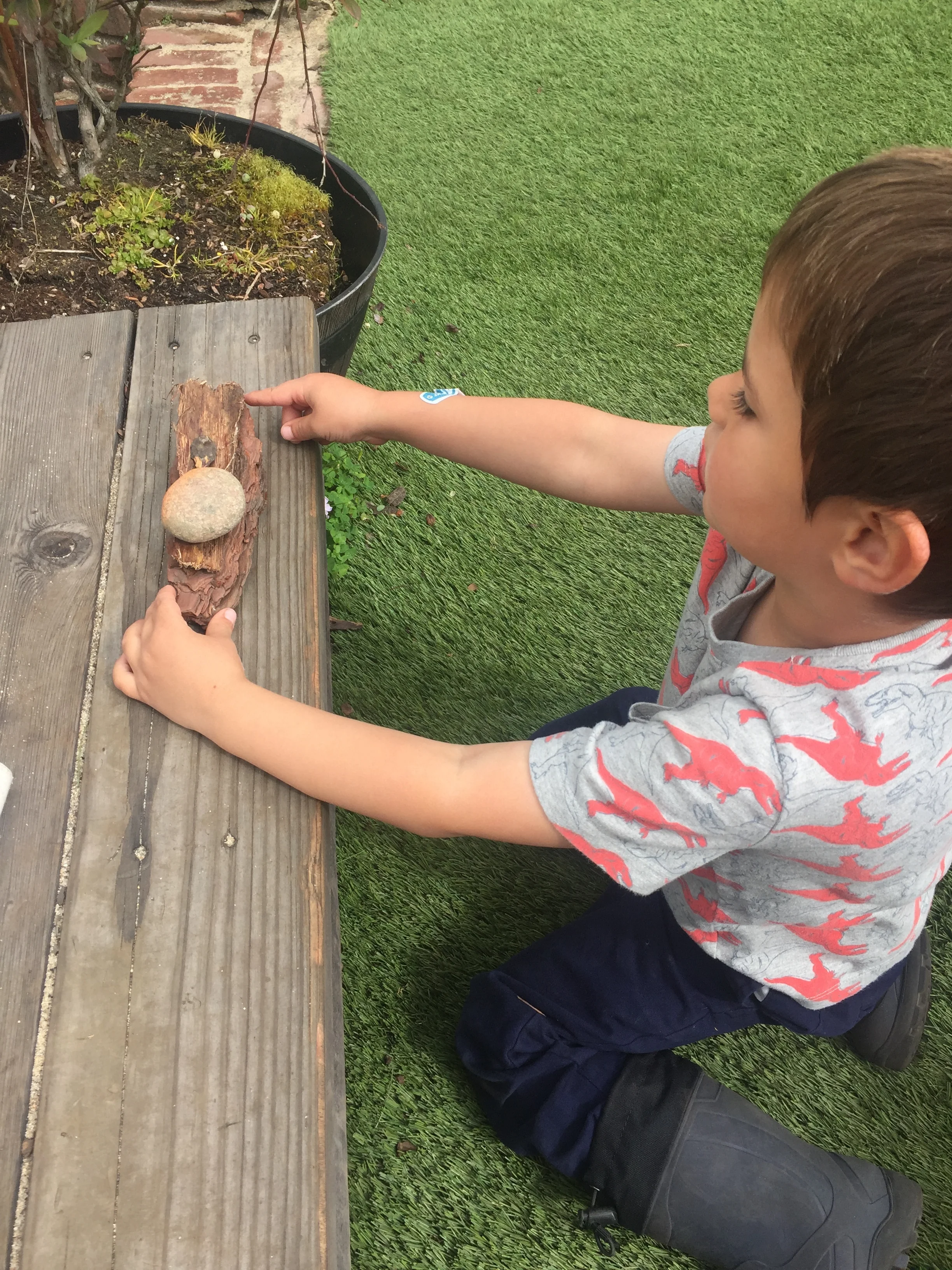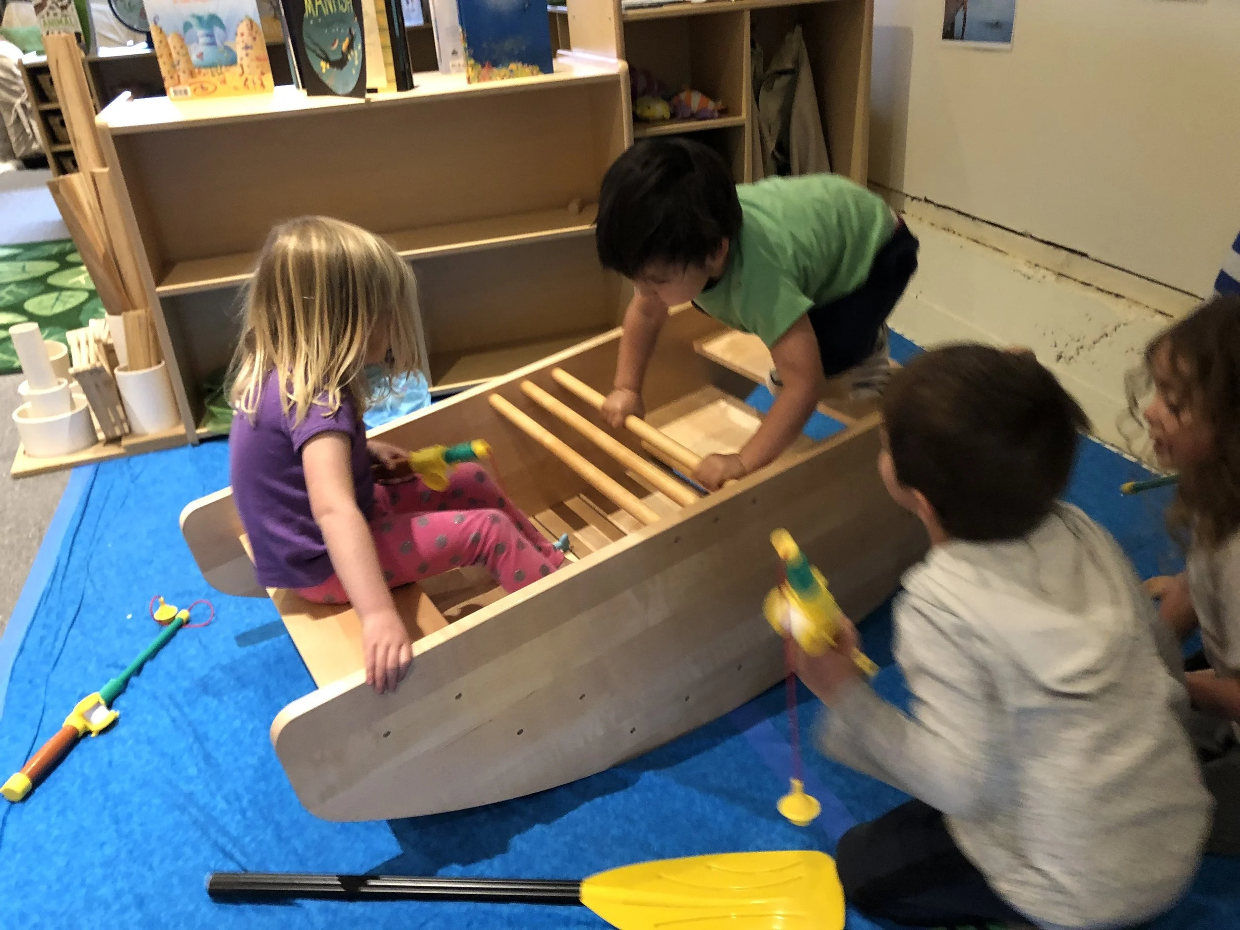 We’ve gone fishing! We now have a lake at school where we can take the boat out to go catch some fish. With the magic of magnets, we pick up the fish and put them in our boat. It is really silly when our friends pretend to be fish or sharks and we have to catch them with the big net! When we are feeling adventurous we make a treasure map and head out to sea in search of the treasure. Sometimes we can convince our teachers to come along for the ride too. We enjoy spending our time in the boat fishing, paddling, reading, and singing “Row, Row, Row Your Boat”.