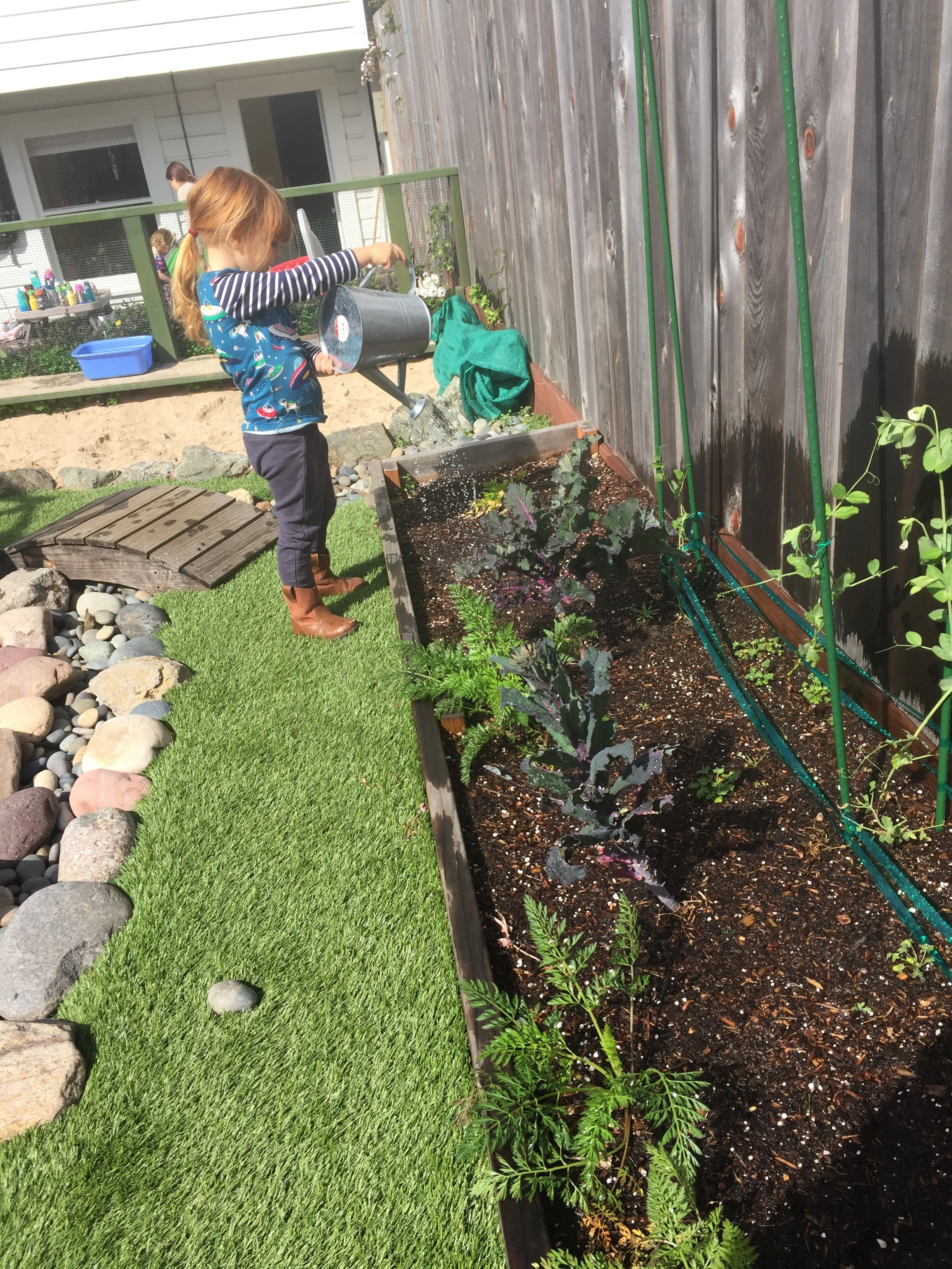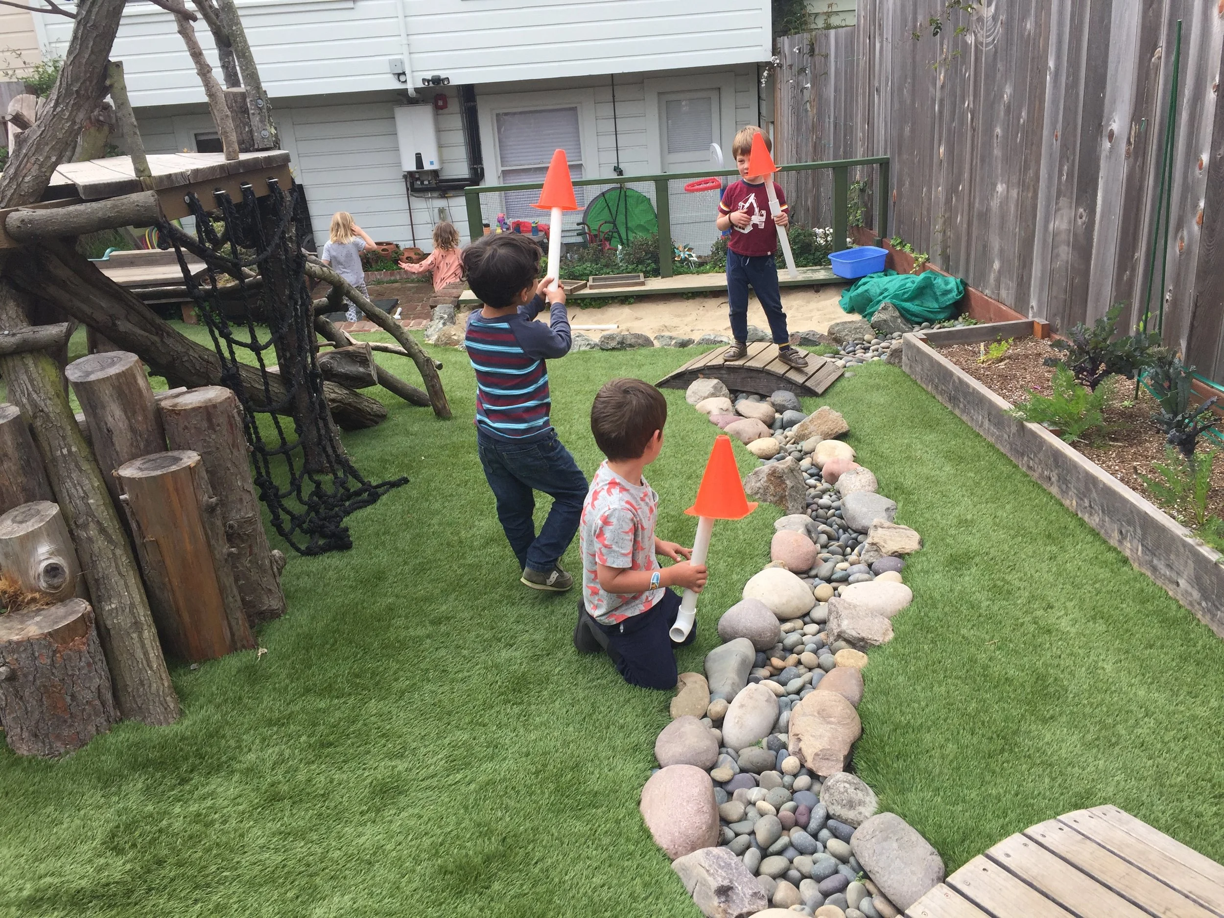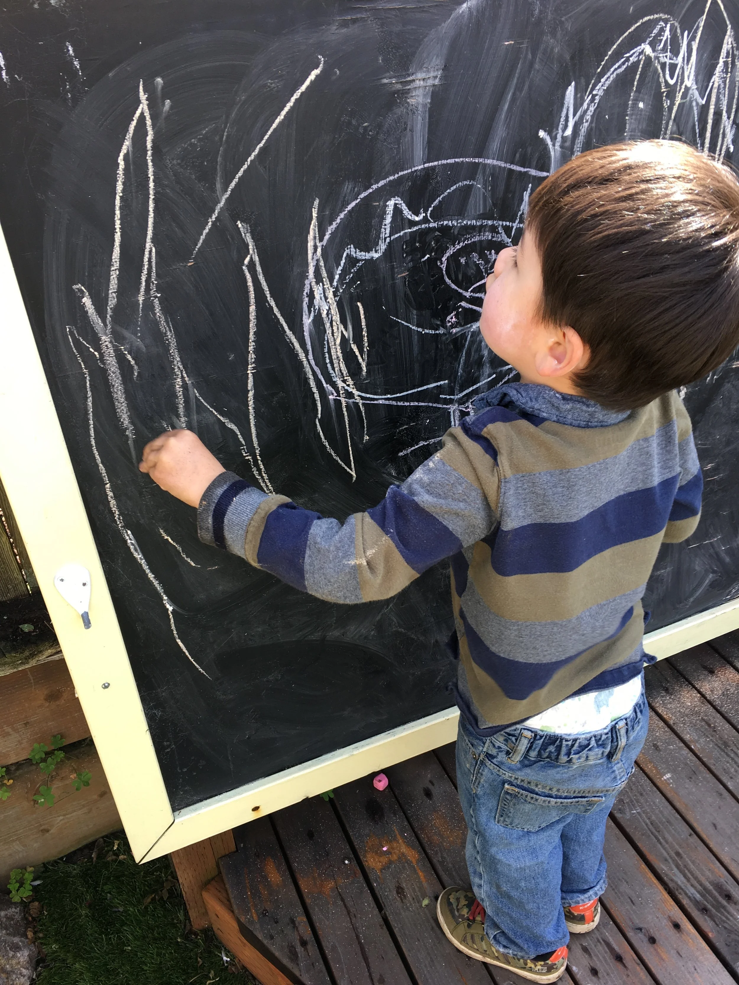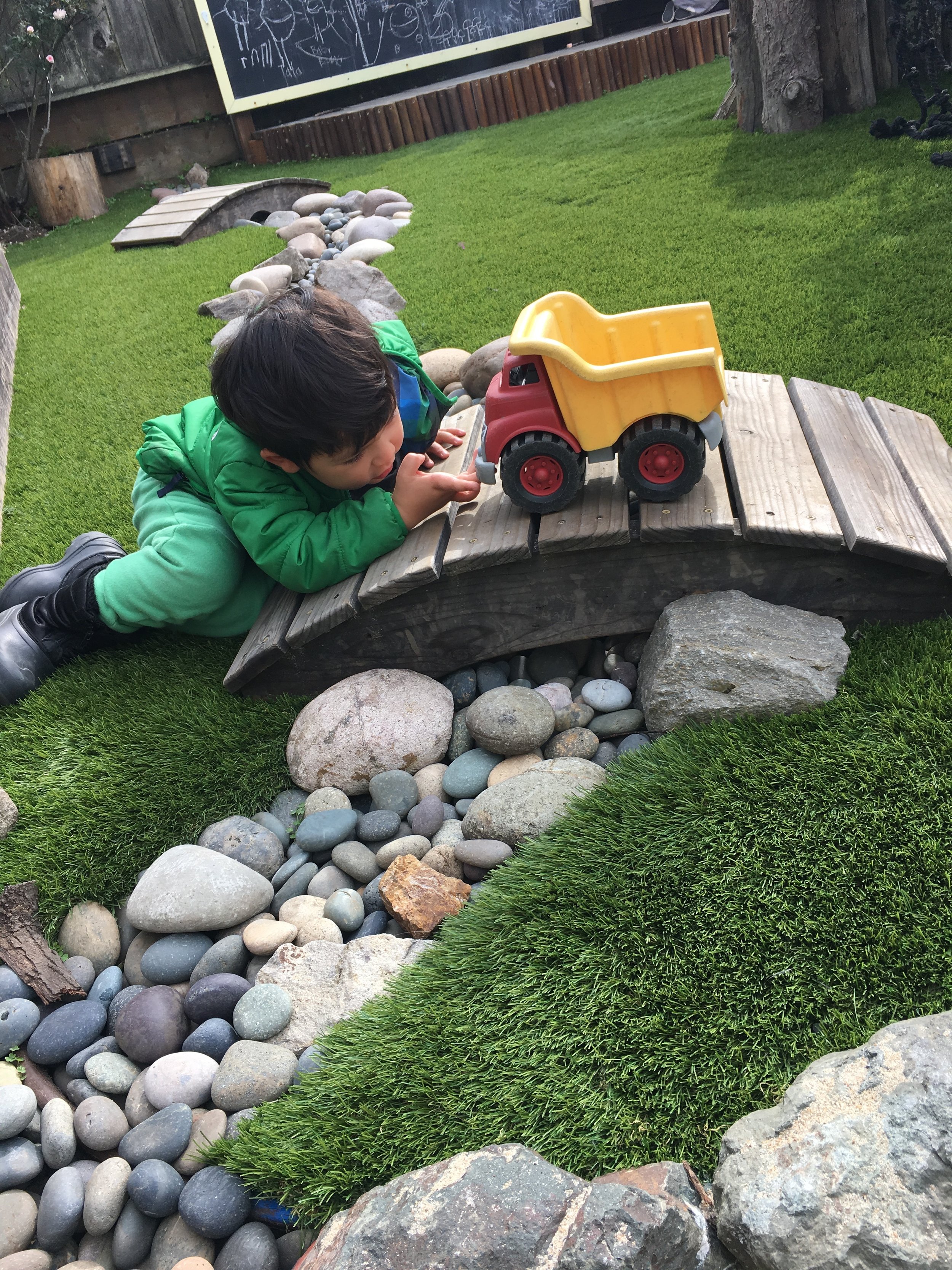 The rainy days have passed and with that we’ve been engaged in all sorts of play outside. With the excitement of getting chicks, we have been building farms with the blocks and using the rocks as pretend animals. We also build pirate ships with canons to voyage into the sea with our friends, as well as bridges on which we carefully walk across so that we don’t fall into the ocean! Similarly, we’ve been working with our friends to construct boats with sails and magic doorways with the pipes. Our pretend play then takes off from there! We sometimes pretend that the pipes are torches and march around with them, or that they are wrenches to fix our broken tricycles. When we’re not constructing, we like to water the plants in our garden and go on a bug hunt, searching for spiders, worms, and butterflies to examine. We have lots of fun going on the swing (which often becomes our car) with our friends and get a good workout when we take turns pushing the crew that’s onboard. Continuing our passion for art, we love drawing and discussing what we’ve illustrated with our teachers and friends. Each and every single day, our outside play is endless!