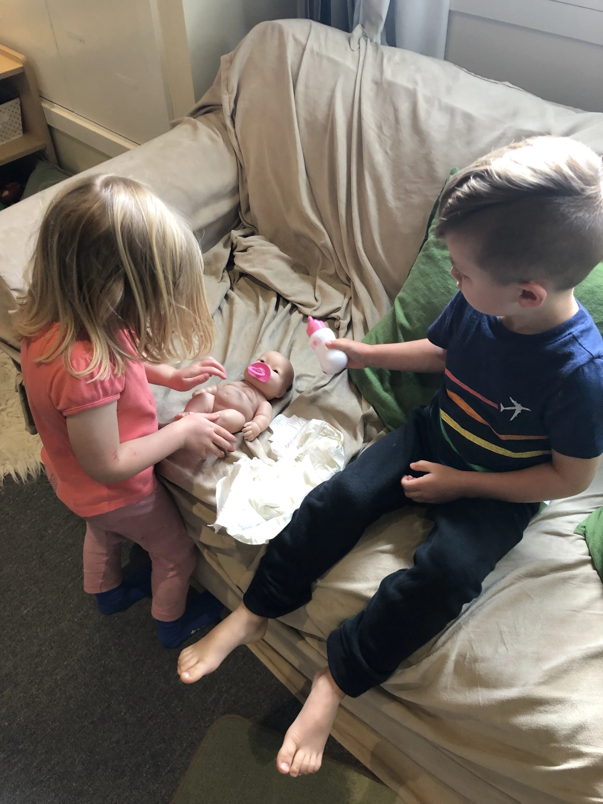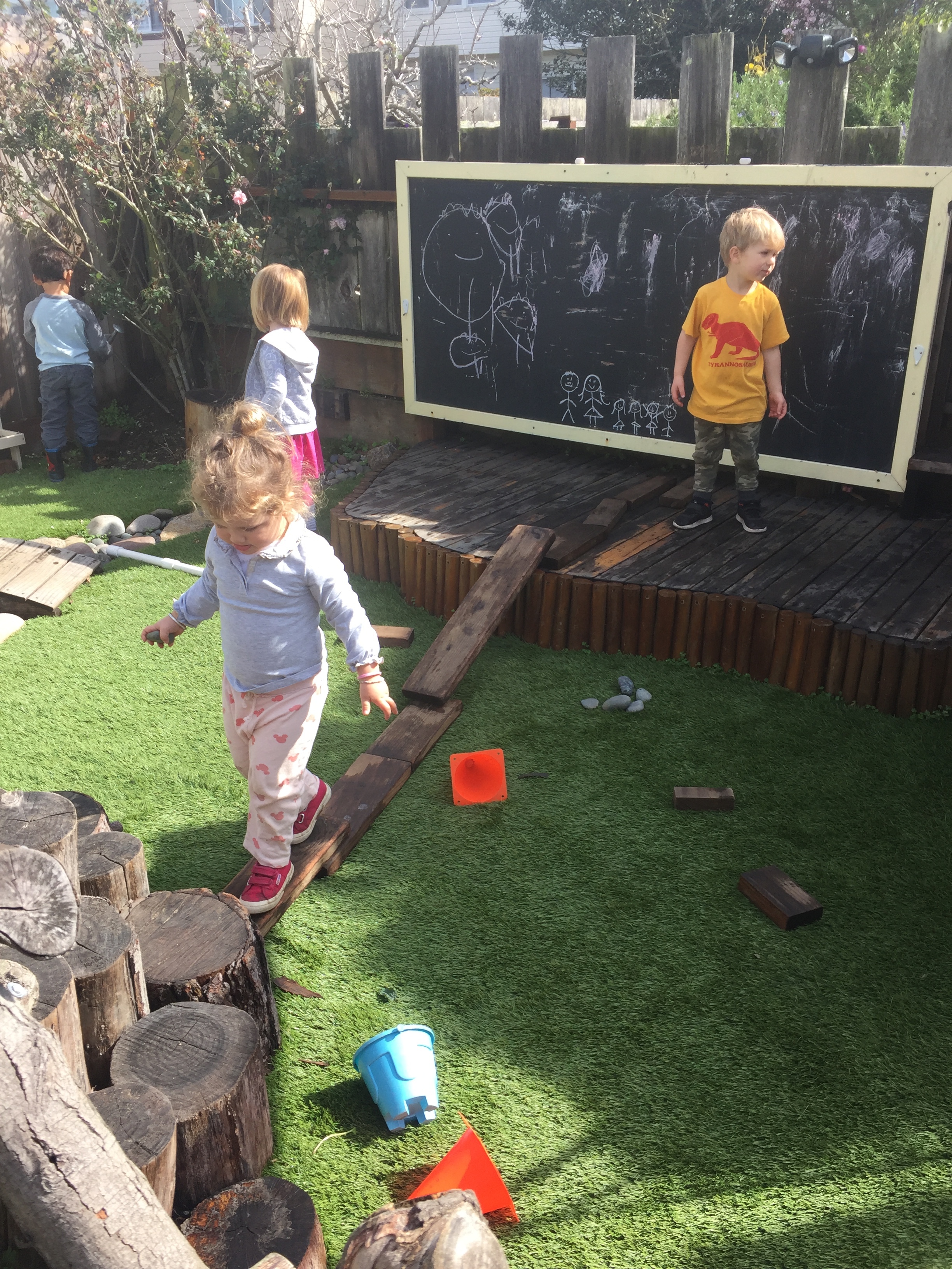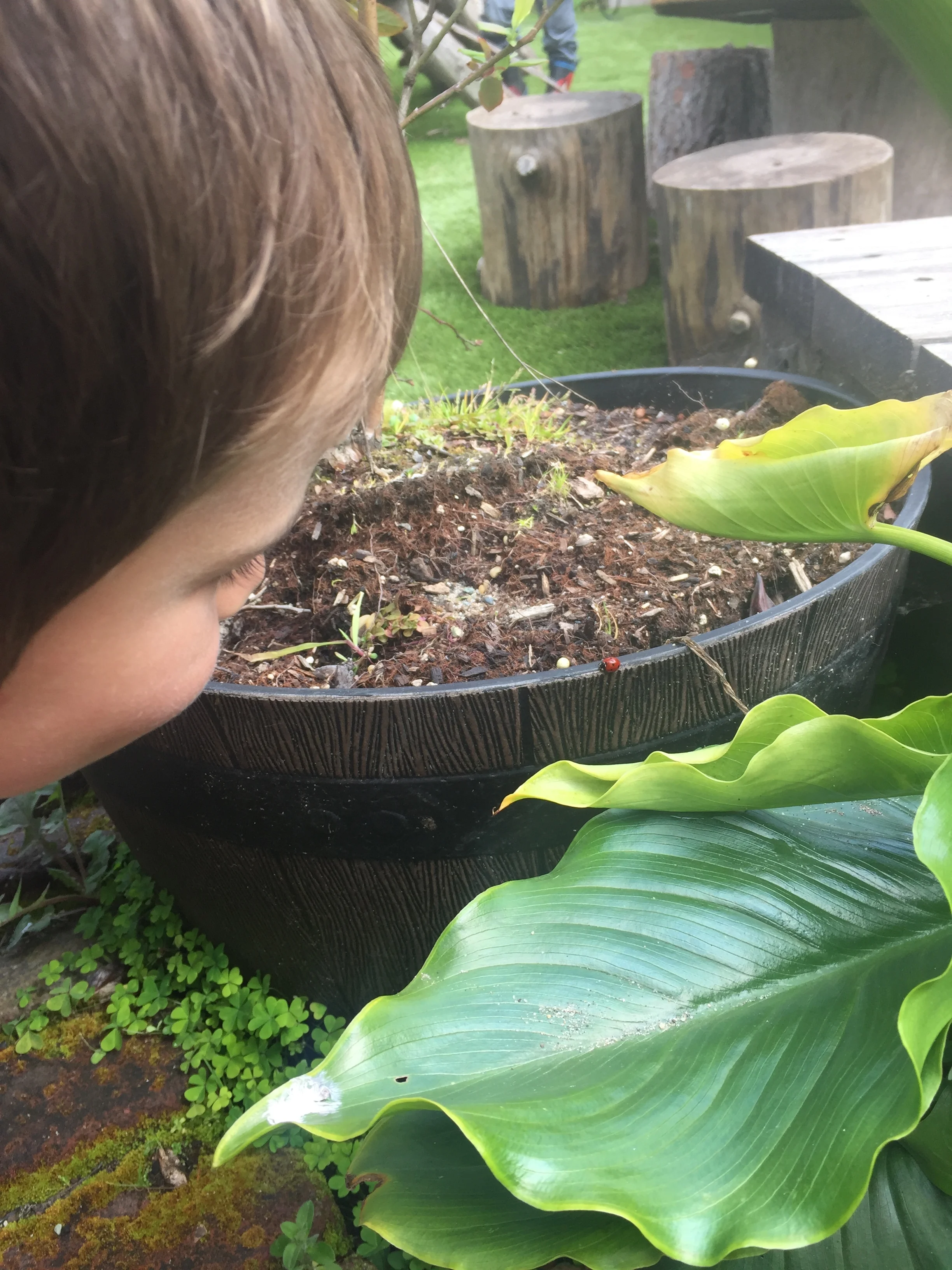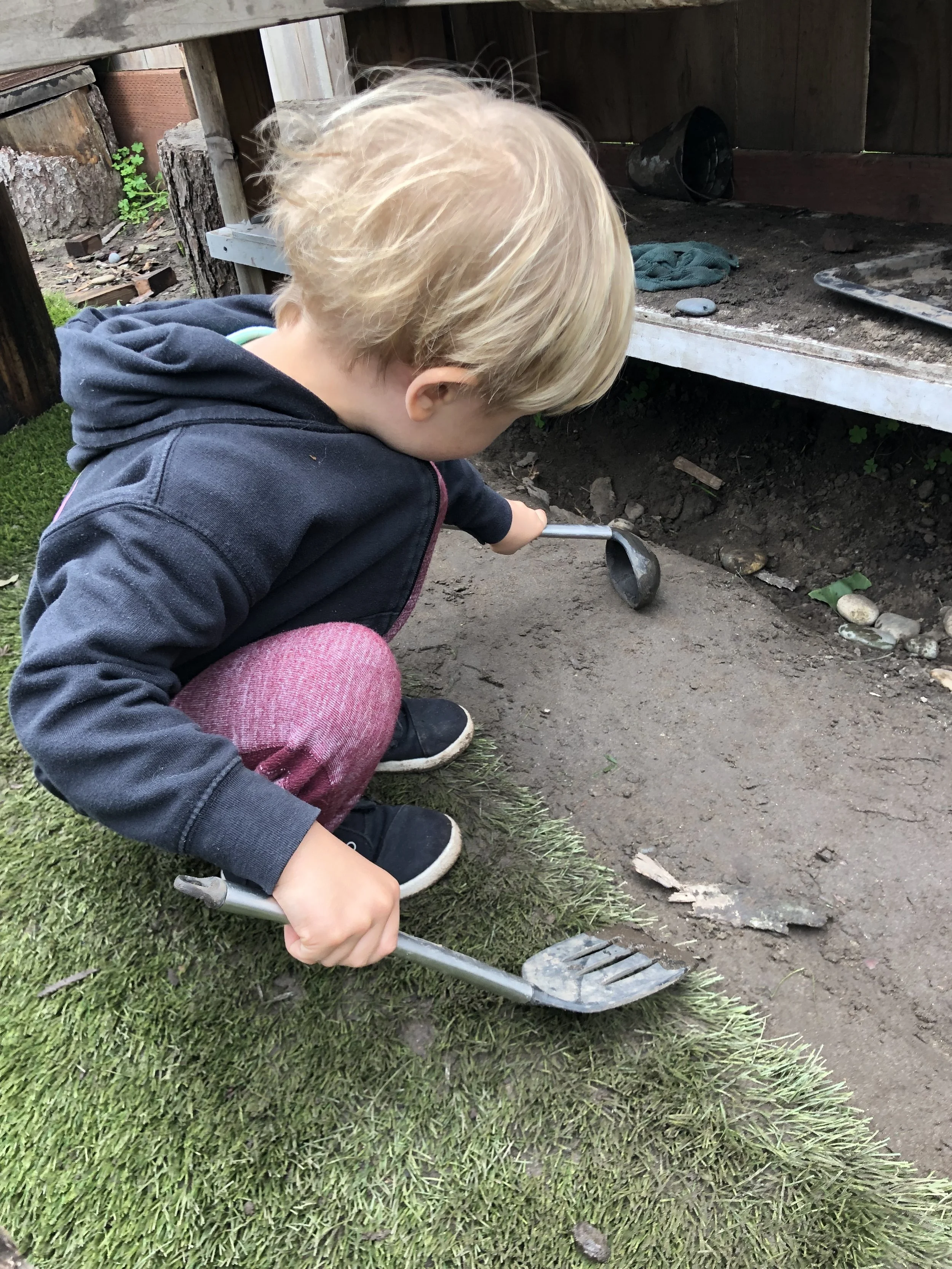 The rainy days have passed and with that we’ve been engaged in all sorts of play outside. With the excitement of getting chicks, we have been building farms with the blocks and using the rocks as pretend animals. We also build pirate ships with canons to voyage into the sea with our friends, as well as bridges on which we carefully walk across so that we don’t fall into the ocean! Similarly, we’ve been working with our friends to construct boats with sails and magic doorways with the pipes. Our pretend play then takes off from there! We sometimes pretend that the pipes are torches and march around with them, or that they are wrenches to fix our broken tricycles. When we’re not constructing, we like to water the plants in our garden and go on a bug hunt, searching for spiders, worms, and butterflies to examine. We have lots of fun going on the swing (which often becomes our car) with our friends and get a good workout when we take turns pushing the crew that’s onboard. Continuing our passion for art, we love drawing and discussing what we’ve illustrated with our teachers and friends. Each and every single day, our outside play is endless!